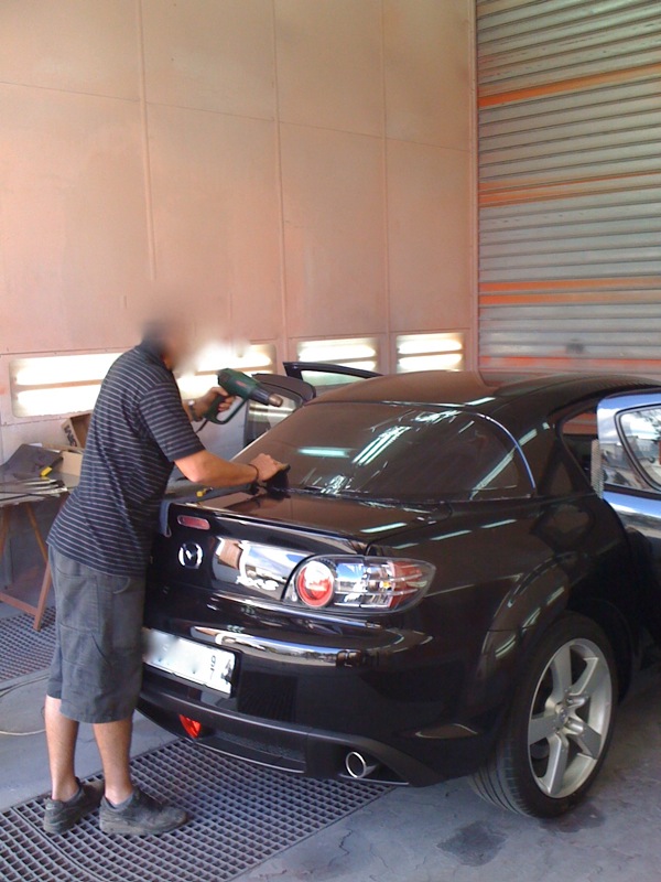 Quelques photos de la pose, désolé pour la qualité tout est pris du GSM. Lieu idéal pour la pose, une cabine de carrossier.