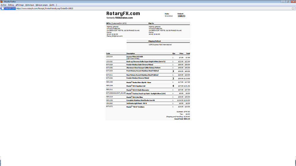 Et en prime, je n'avais pas du envoyé une copie de la facture & commande pour la douane (ce qui était le cas en passant par le site).