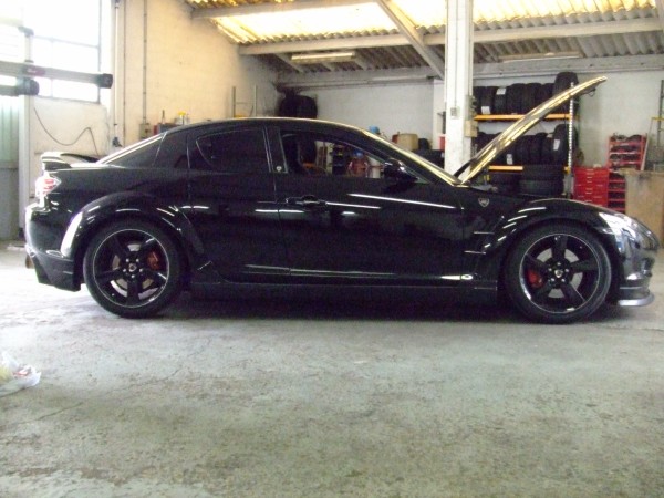 RX-8 192 BB/Vitres teinté/Stop Rx-8/Ressort H&R/kit Ipod/Débadgé/Etrier red/Ailettes chromé/Grilles PC AV&AR/Rotor AV&AR/RAM Air/Peinture jantes Black/Collec autobahn/decata SSAC.