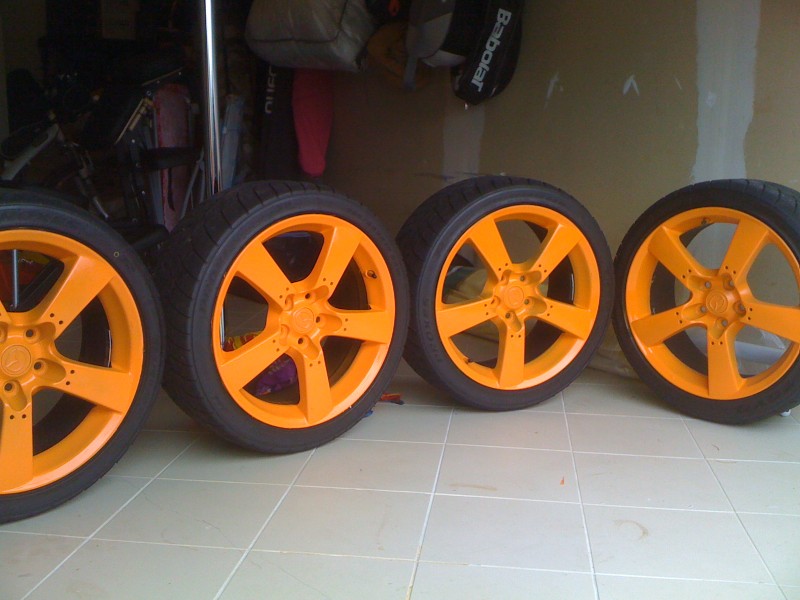 Je suis, comme je le disais, plutot satisfait, car les zones peintes ont été bien délimitées. J'ai fait un gabarit en carton qui venait se placer dans la jante. Ca m'a permis de ne pas peindre tout le fond de la jante.