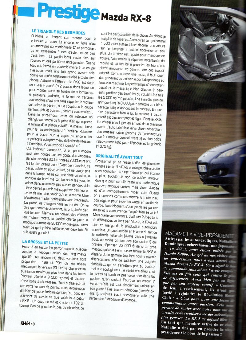 Bon je viens de prendre un peu de temps pour lire l'article complet, je suis assez satisfaite, il a bien perçu mon enthousiasme sur la 8, ça fait plaisir, à part 2-3 petites choses il a vraiment bien retranscrit nos discussions, à un tel point que parfois j'ai l'impression de m'entendre parler, surtout quand il raconte ce qu'on ressent à son volant