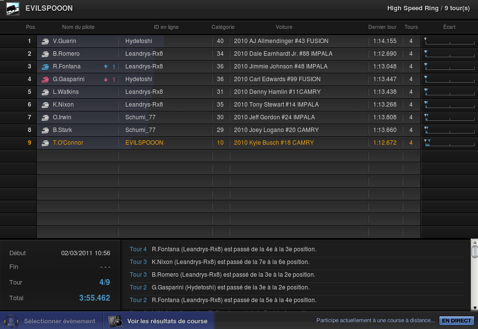 mouahahah toshy, t'as jouer avec mes pilotes ce week end. Bizarrement, Schumacher, tu l'a fait courir qu'une fois et il a fini premier. Ironman, tu l'a utilisé jusqu'à ce qu'il finisse premier.