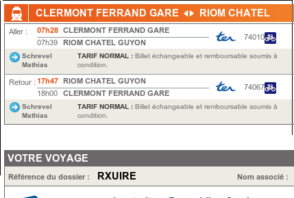 Réservation de mon train pour le boulot: