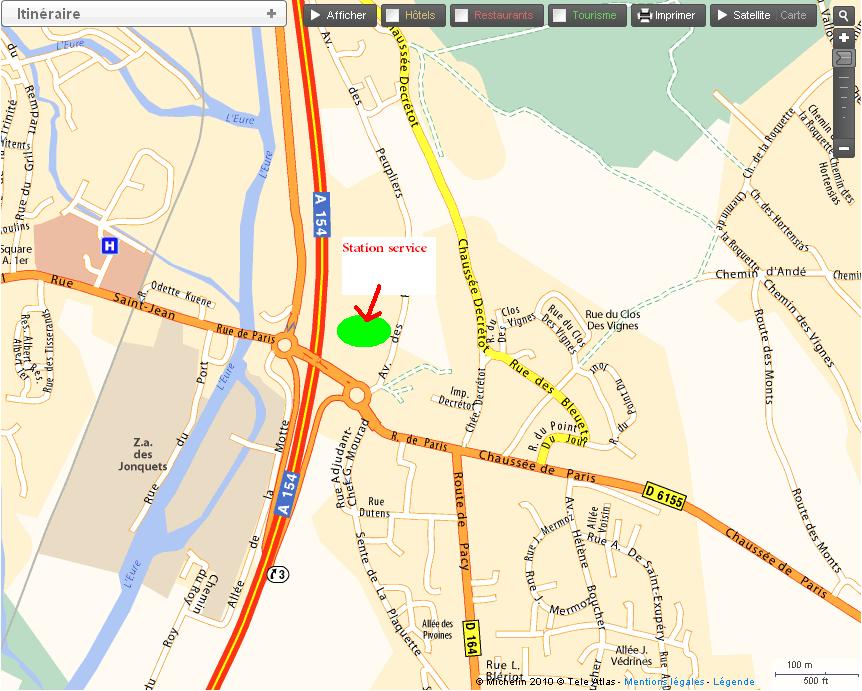 Ou alors si tu passe par la N13 tu peu t'arrêter avant le point de ralliement du matin a Carrefour Evreux (Les Longs Buissons Route Nationale 13; 27930 Guichainville) pour faire le plein. Si tu viens par la N12 tu peut t'arrêté avant de prendre la RN 154 au dessus de St Rémy sur Avre, il y a une station Leclerc (Route d´Alençon-Evreux; N12 D49; 27320 La Madeleine-de-Nonancourt) CF plants. Au niveau de Damville a 5 Km il doit y avoir un Champion mais cela reste a vérifier :??: .