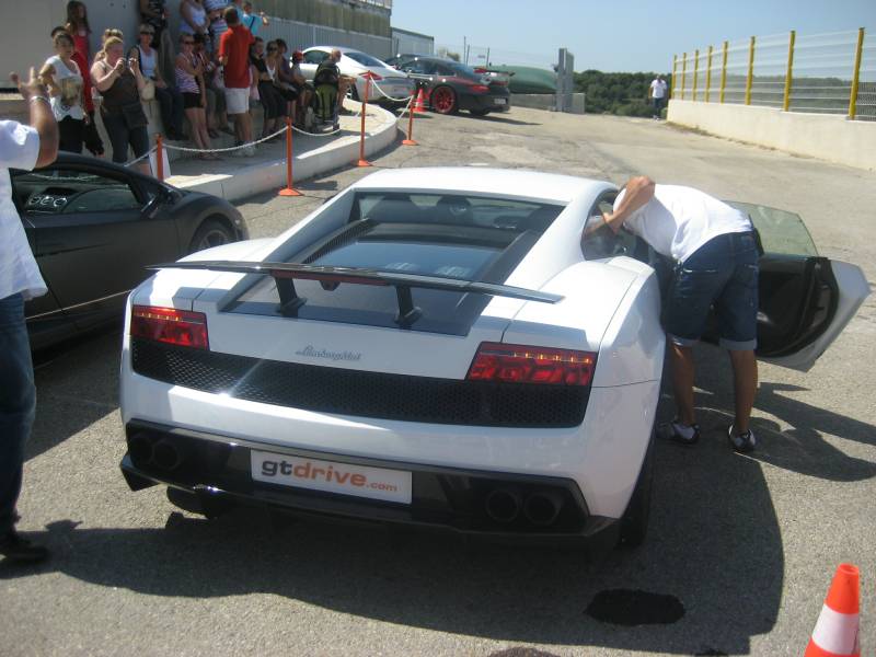 un stage de pilotage en Gallardo, de 8 tours chacun, sur la piste 2 de Ledenon.