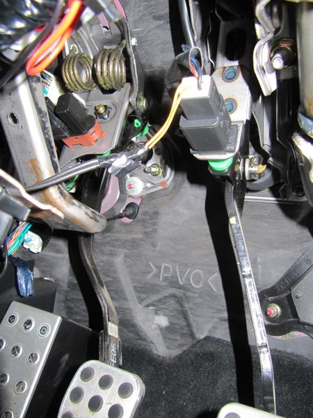 Vue du raccordement à faire pour prendre en compte le contacteur de la pédale de frein pour avoir le CRUISE comme les versions après 2006