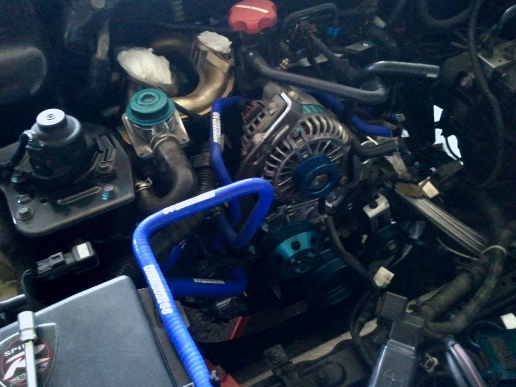 a droite les durites tressé sont celle du radiateur d'huile supplémentairement (plaque sandwich thermostat).