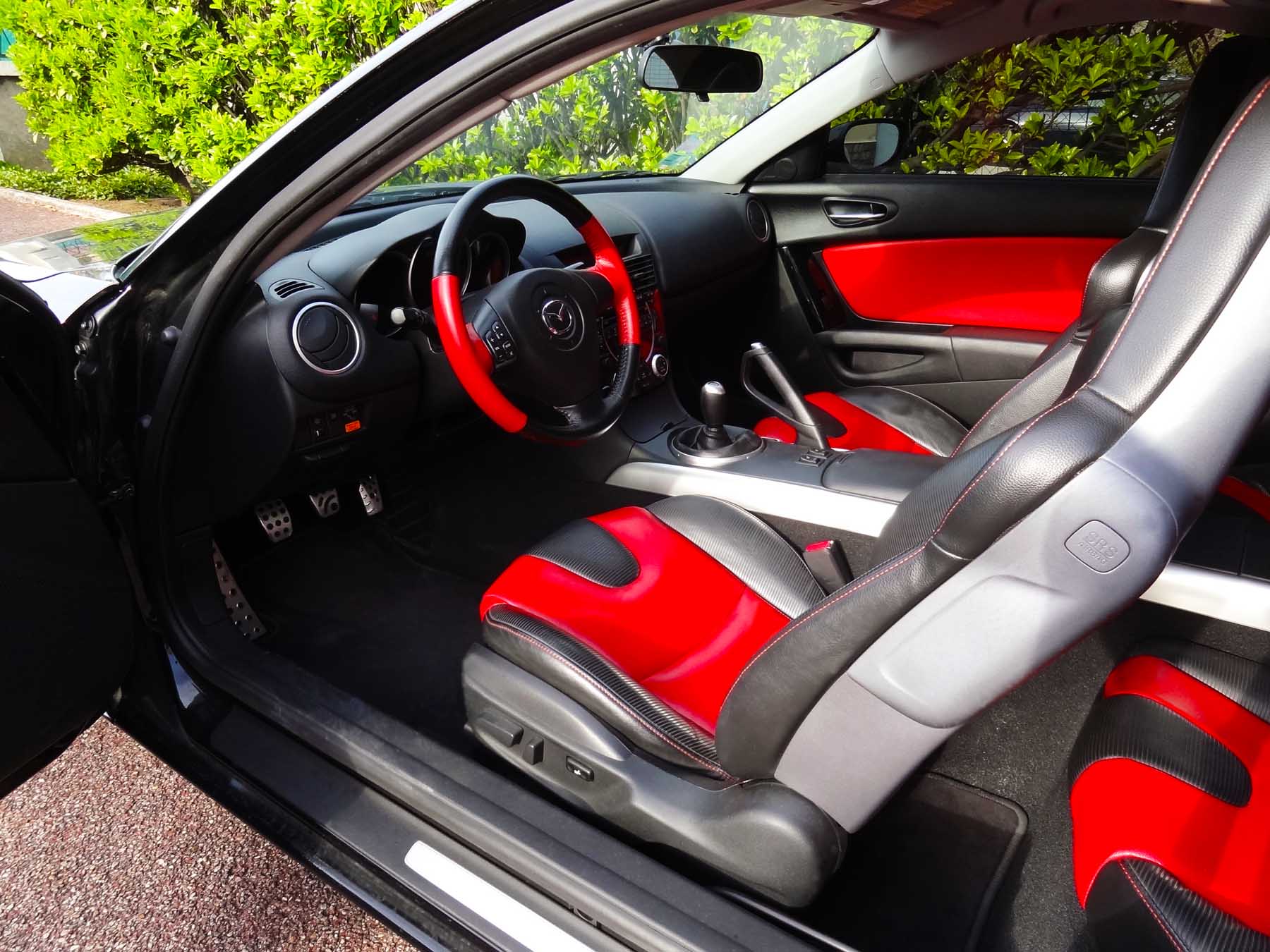 - Glass Teint Noir. Les fenêtres de la RX-8, petites et courbées permettent de mettre un film léger ne brouillant pas la vue du conducteur mais empêchant de voir l’intérieur. Je l’ai surtout fait mettre pour protéger le cuir des UV.