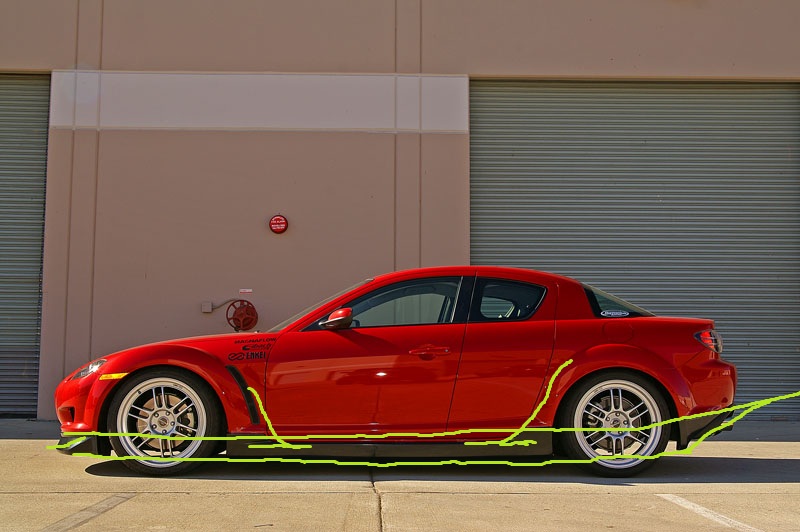 je voulais mettre des arrete pour un peu arrondir mais apres pas facile pour coller des marque...voila pourquoi c'est mieu plat mais sinon les bas de caisse coole bien a la forme de la 8...