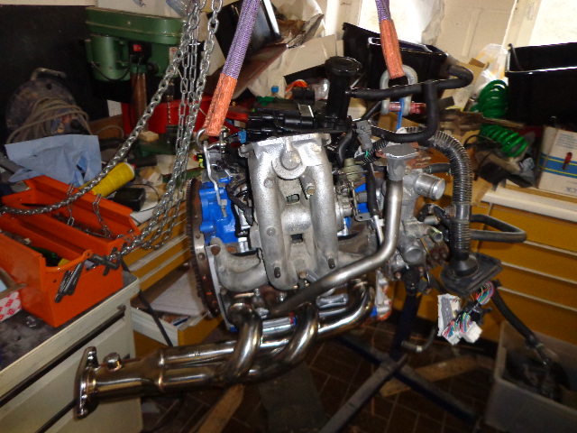 Remontage de : collecteur échappement, tube de SAP, collecteur bas admission, housing de thermostat, MOP, câblage moteur, injecteurs et rails d'injection, et quelques capteurs.