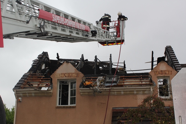 Mes voisins sont supers et m'aident beaucoup pour la logistique des opérations depuis 2 jours et je les en remercie beaucoup... Une voisine a fait des photos avec son appareil et à demandé aux pompiers de faire des photos avec son appareil à partir de la nacelle en plongée sur les presque ruines...