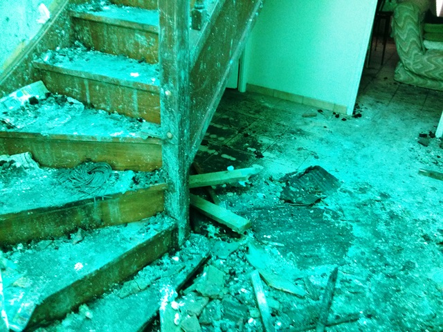 La couleur verte de certaines photos vient de la lumière d'ambiance dû à la bâche verte qui assure la couverture de la maison.