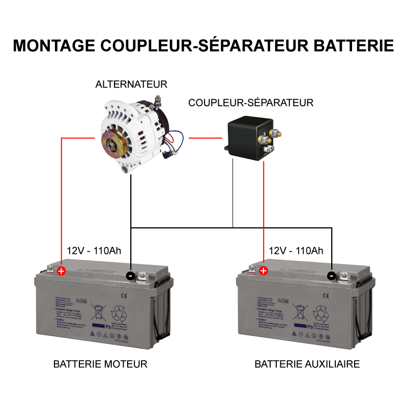 Bin en fait il suffit de câbler la seconde batterie sur l'alternateur et de brancher les amplis dessus. Comme ca la batterie principale ne sert qu'au moteur.