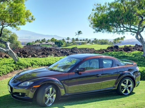 A investiguer la vente locale ici a Hawaii versus l'expedition a travers le monde vers la France pour mon retour prochain, j'ai pris une serie de photos pour mon annonce. Si je vends la voiture, cette collection marquera le tres bon souvenir de cette merveille que j'ai conduite pendant 8 ans. J'en profite pour partager sur ce forum quelques-unes des photos de cette rarete en Europe. Photos prises au Mauna Lani la semaine derniere. A bientot sur les routes francaises, au volant d'une RX-8 quoiqu'il arrive. Aloha!