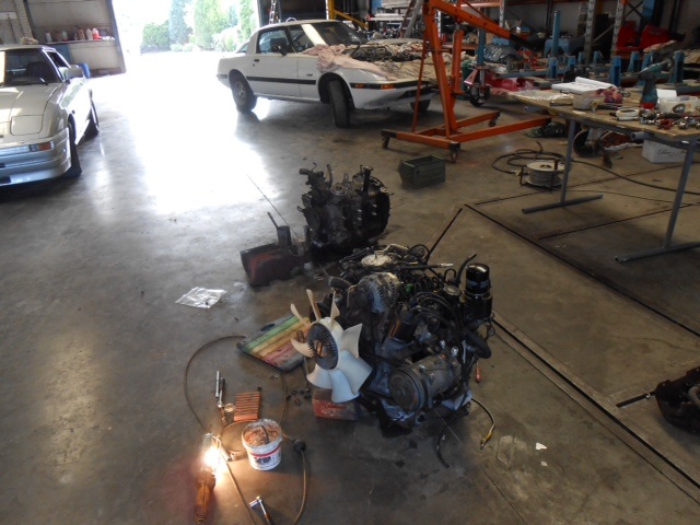La mécanique a été révisée, moteur occasion (il provient de la rx7 grise que j'ai démonté qui avait le châssis tordu) avec environ 6,5kg de compression sur chaques faces des 2 rotors.