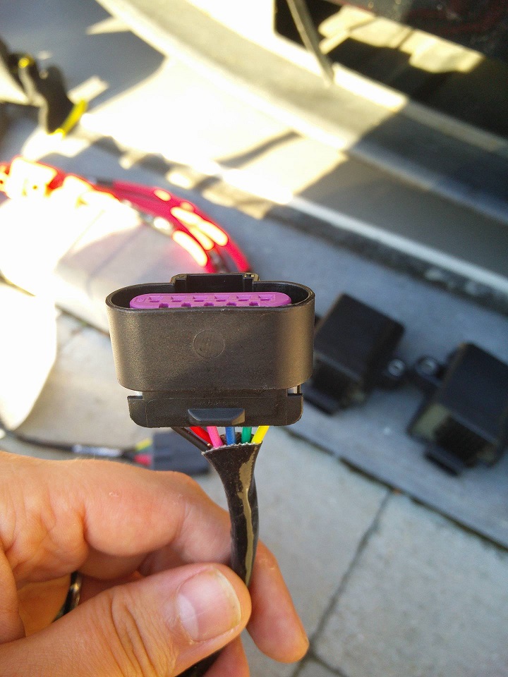 Avant d'installer le support, connexion du harness sur les branchements OEM, on peut pas se tromper, c'est comme le port salut.