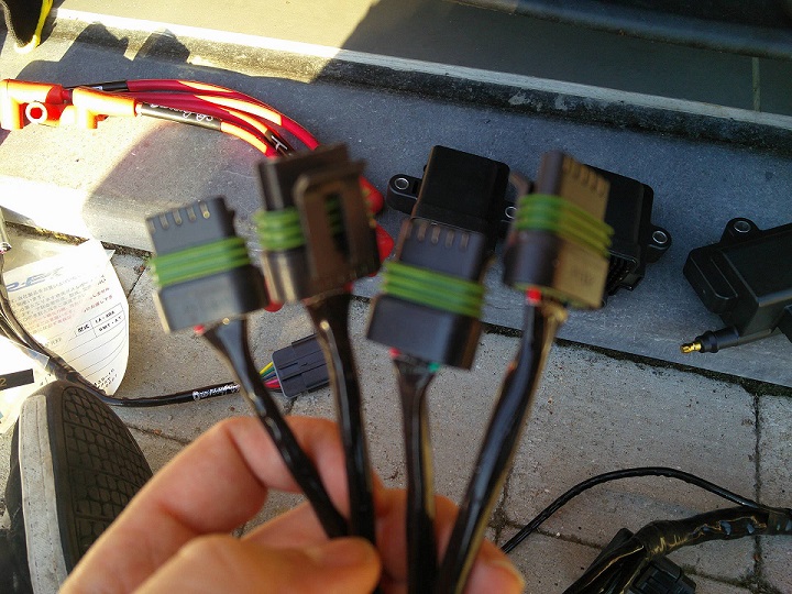 Le raccord pour les deux parties du harness, puis la connexion aux bobines