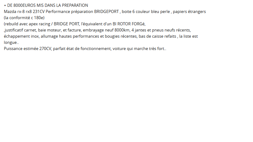 Moteur 1800 km bridge port apex
