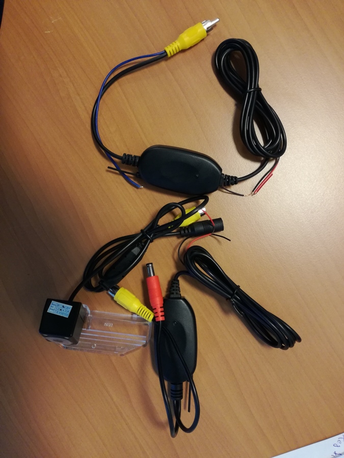 La caméra de recul en 2.4 Gz avec sa partie émetteur (en haut) à plugger dans l'autoradio et la partie caméra proprement dite avec son émetteur et alimentation séparée. Ca commence à faire du monde