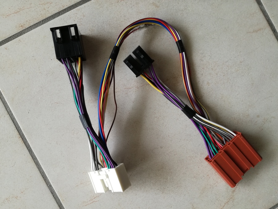 Le harnais côté prise Mazda, commandes au volant, filtres RCA et prises RCA, connecteur Pioneer et toutes les connexions intermédiaires incluant les soudures et les connecteurs rapides