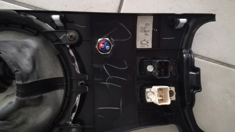 Installation de l'interrupteur sur la console du levier de vitesse. C'est quand même plus propre que de le laisser pendouiller sous le tableau de bord