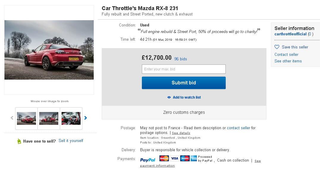 Sinon les enchères sont terminées et la RX-8 Car Throttle est partie à £14900 (environ 17300 €)