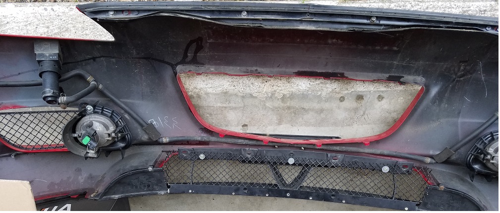 Si l'on regarde en vue de face le passage de la cloison pour l'ex VFAD est pile poil juste au dessus de la traverse avant. C'est complètement dégagé dès lors que l'on a supprimé le polystyrène de la traverse (amortisseur en cas de choc!) et enlevé le bloc en plastique noir de forme cuvette . Je ne remonterait rien (plus de tuyau VFAD, plus de cuvette noire et pas de polystyrène). Il ne restera que la traverse juste derrière la grille mais encore pas directement collée. L'air va donc pouvoir engouffrer par la magnifique grille PZ sans aucun gène , glissé contre le bouclier sur la partie supérieur pour venir s'engouffrer dans le passage de cloison pour rejoindre l'espace ou est le K&N. J'ai juste récupérer la partie de traversée de la cloison de la VFAD.