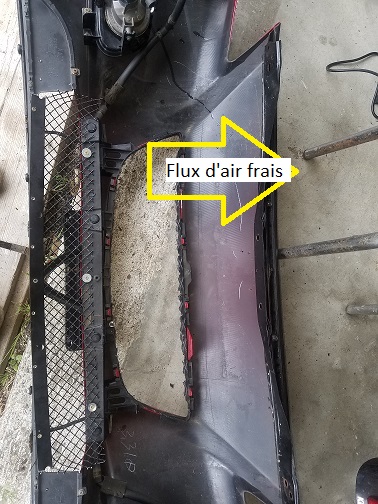 De facto l’immense espace ainsi créer et libérer entre la grille et la cloison - radiateur forme un magnifique "poumon" d'air frais qui sert de préchambre de tranquillisation avant de s’écouler vers le K&N.