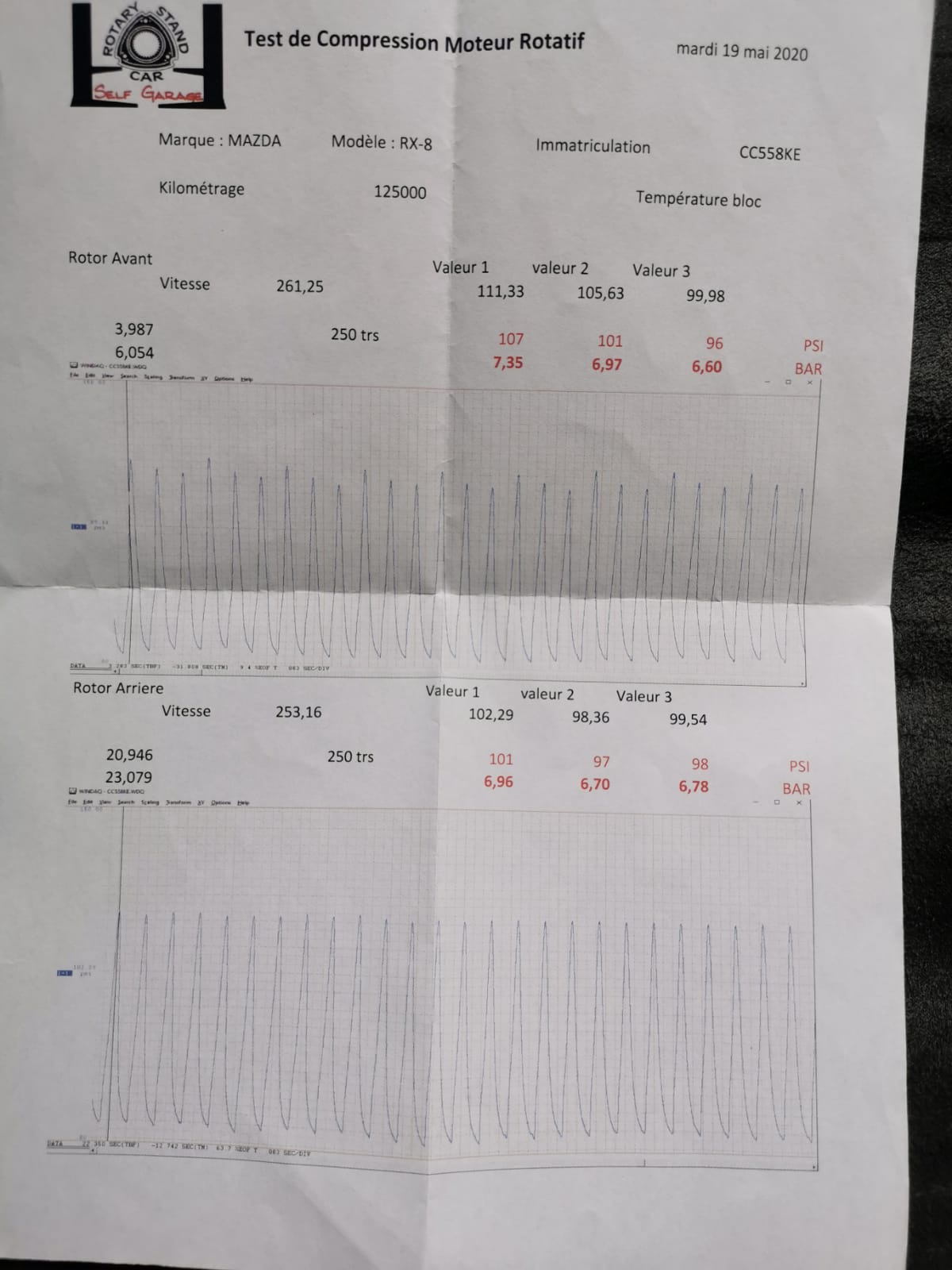 7.3, 6.9, 6.6 en compression rotor AV et 6.9, 6.7, 6.7 à l’arrière je suis sur le fil le rebuild c'est déja pour bientôt j'ai de grands projets pour mon bébé :D.
