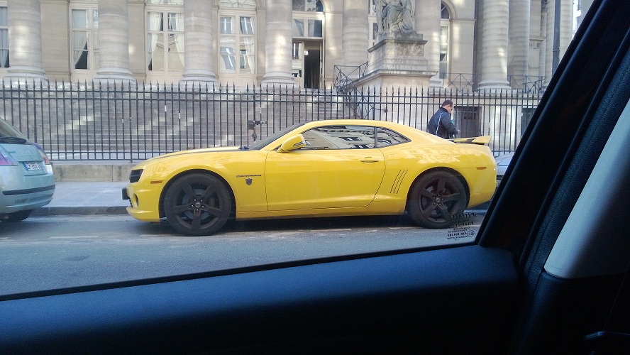 Une Camaro édition "Transformers" garée Place de la Bourse à Paris