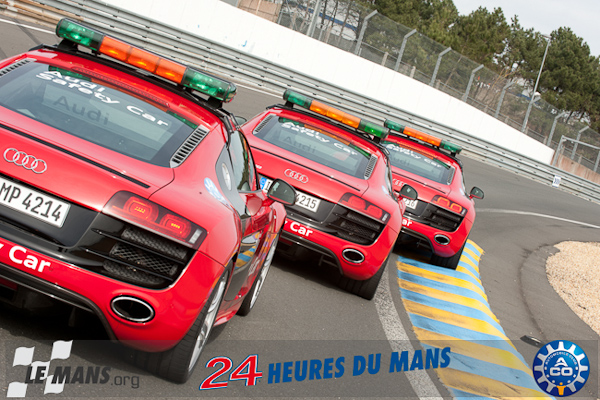 Un changement notable : jusqu’à présent grises, les trois Safety Cars R8 arboreront pour ces 24 Heures 2010 une nouvelle robe rouge. Le gris sera toutefois la couleur des deux voitures Race Control TT-RS, tandis que trois RS6 et deux S4 officieront comme voitures médicales. Cinq Q5 et six Q7 complètent cette flotte.