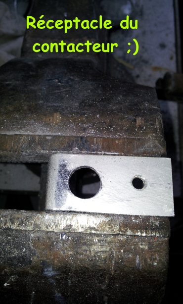 Comme vous pouvez le voir, une patte en équerre en alu est parfaite pour réaliser notre installation. Elle trouvera sa place avec aisance puisque notre belle dispose d'un emplacement d'origine pou ce style de contacteur.