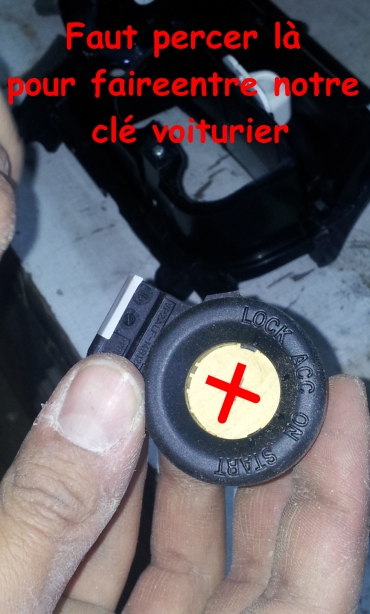 Enfin on positionne notre installation sous le volent au niveau de la pédale d’embrayage. Il faut que le contact se fasse lorsque vous appuierez à fond sur la pédale. Pour en être certain, merci le testeur électrique. Après on branche cela à notre installation électrique selon les plan fournis par Gregorx8