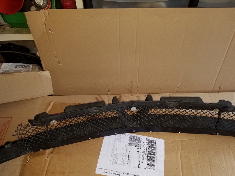 On va s'attaquer au gros morceau la grille d'entrée d'air centrale la je vais devoir découpé la grille d'origine pour éliminer le centre (la pseudo grille plastique) pour ne conserver que le pourtour. Je vais intégrer la grille métallique dans le pourtour plastique et ensuite remonter le tout.