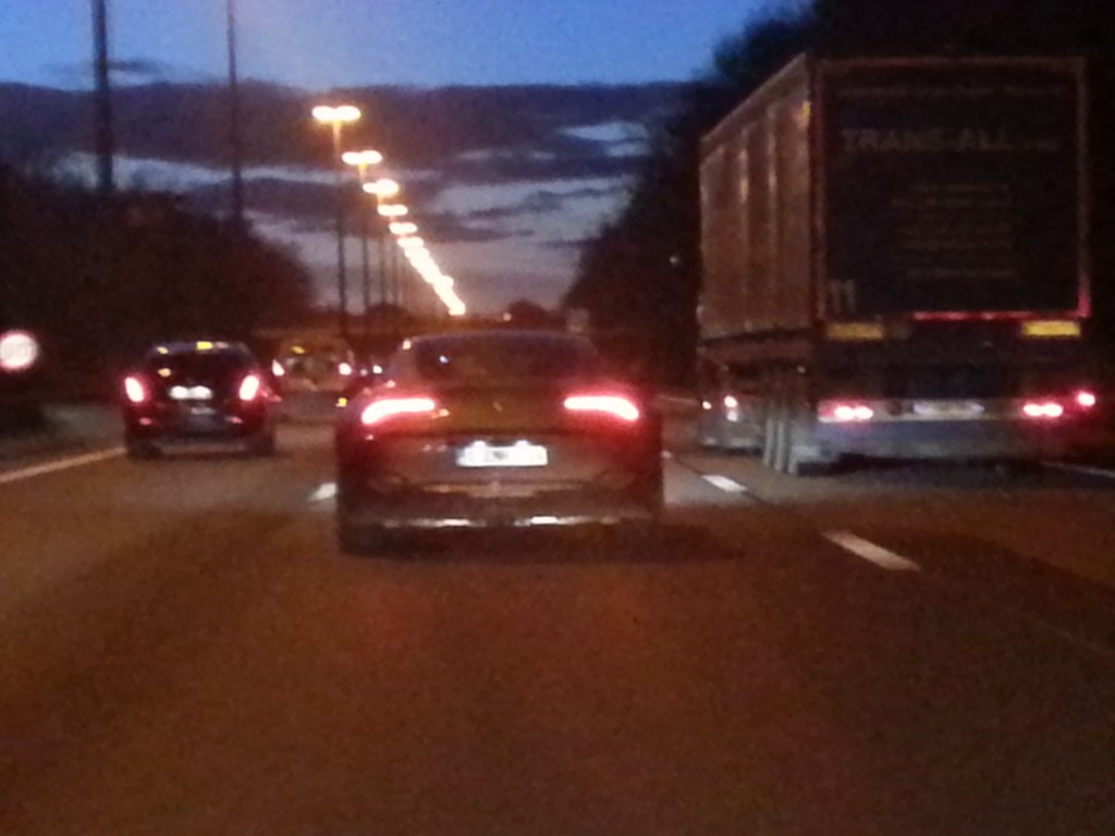 Suivi hier sur l'autoroute, une très belle Fisker Karma (photos pourries, prises en conduisant, en soirée, sans flash).