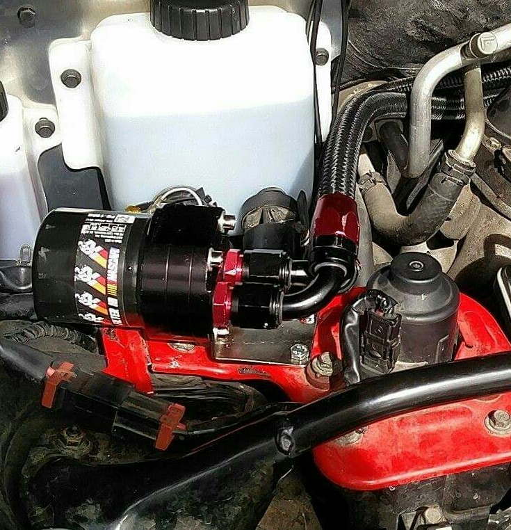 Filtre a huile délocalisé. Une vrai galère à installer, mais ça en vaudra la peine aux prochaines vidanges...