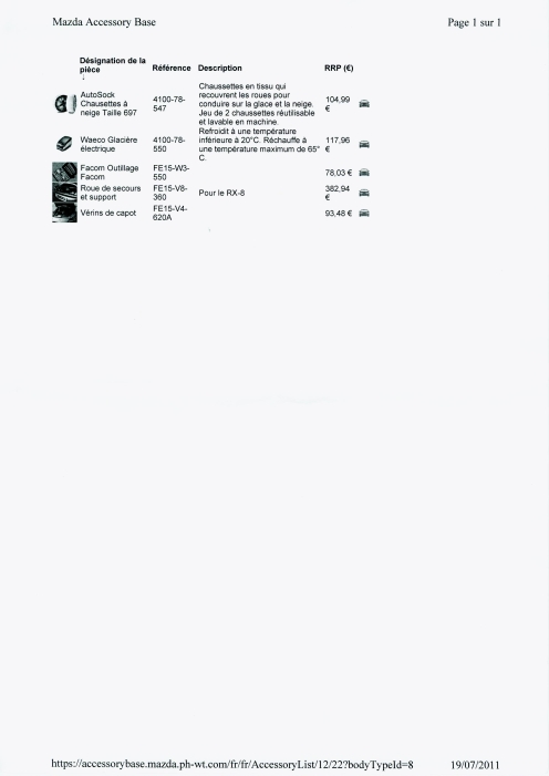 tu vas sur Mazda.fr, puis dans le bandeau du haut '' ma mazda et moi" accessoires et tu choisi RX8