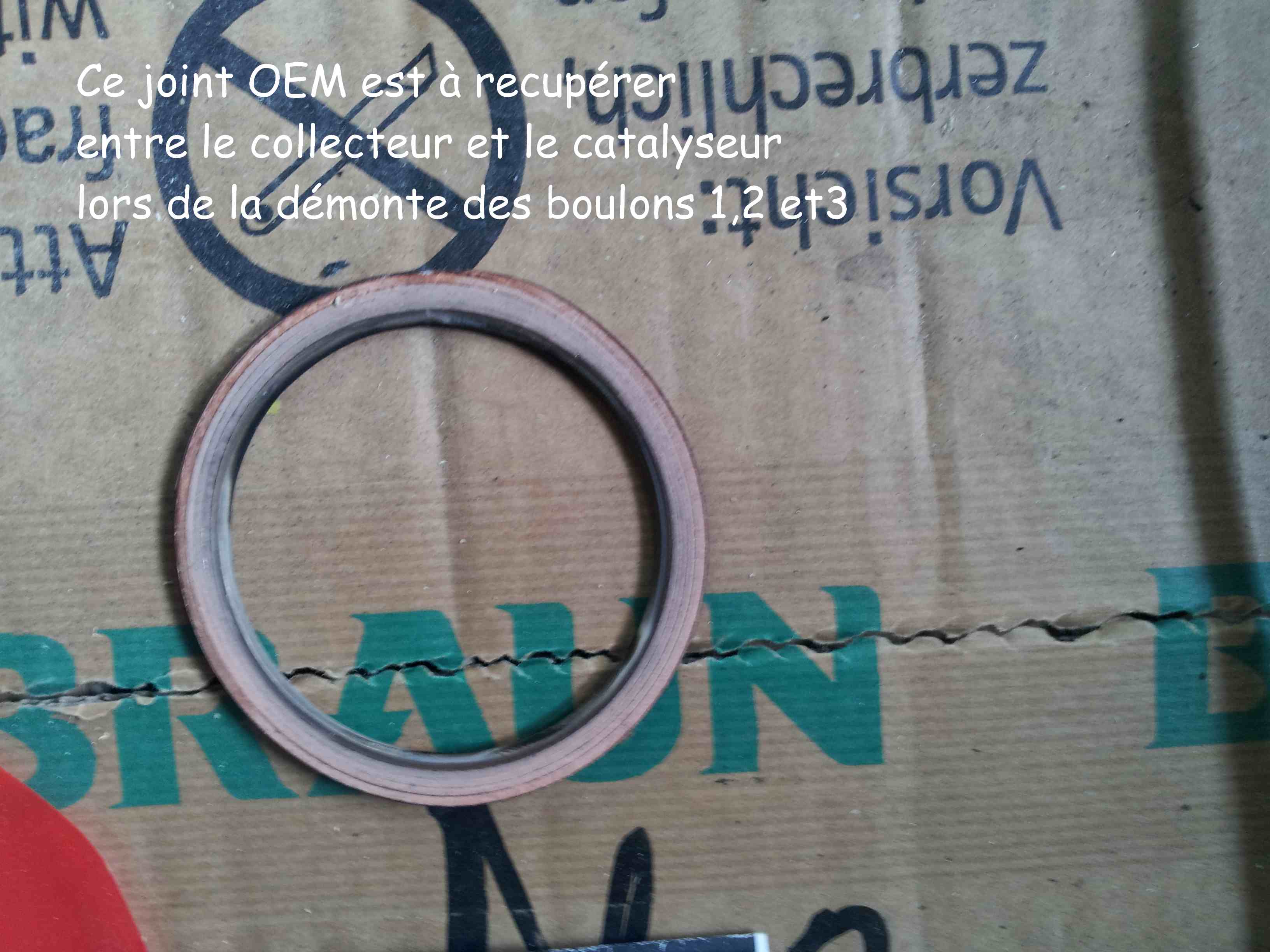 En effet, le replacement du joint plat avant peut être récalcitrant en fonction de votre décata. Le mien n'avait pas de logement pour le recevoir. La place de celui-ci sur le collecteur OEM est faible et le joint tombe dès qu'on boulonne. L'astuce est de se faire aidé par une seconde paire de main qui maintien fermement le décata sur le collecteur pendant qu'on boulonne. Ainsi le joint plat reste en place.