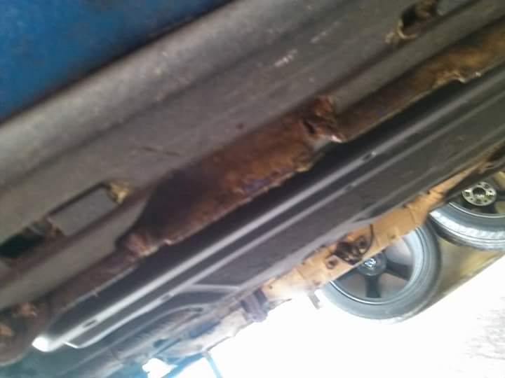 Le plus prononcer c'est bien au niveau des Tiran... Après avoir brossé à la brosse métallique et au papier de verre, j'ai appliqué un stop rouille et repeins avec de la peinture spécial métal.... Le résultat est moyen, un ponçage à la sableuse aurai été mieux mais bon, du moment que la rouille est t...