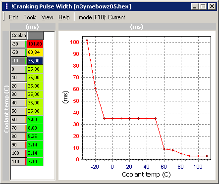 Exemple de Cranking injection time sur RX-7 FD ( ECU Apexi, map de base )