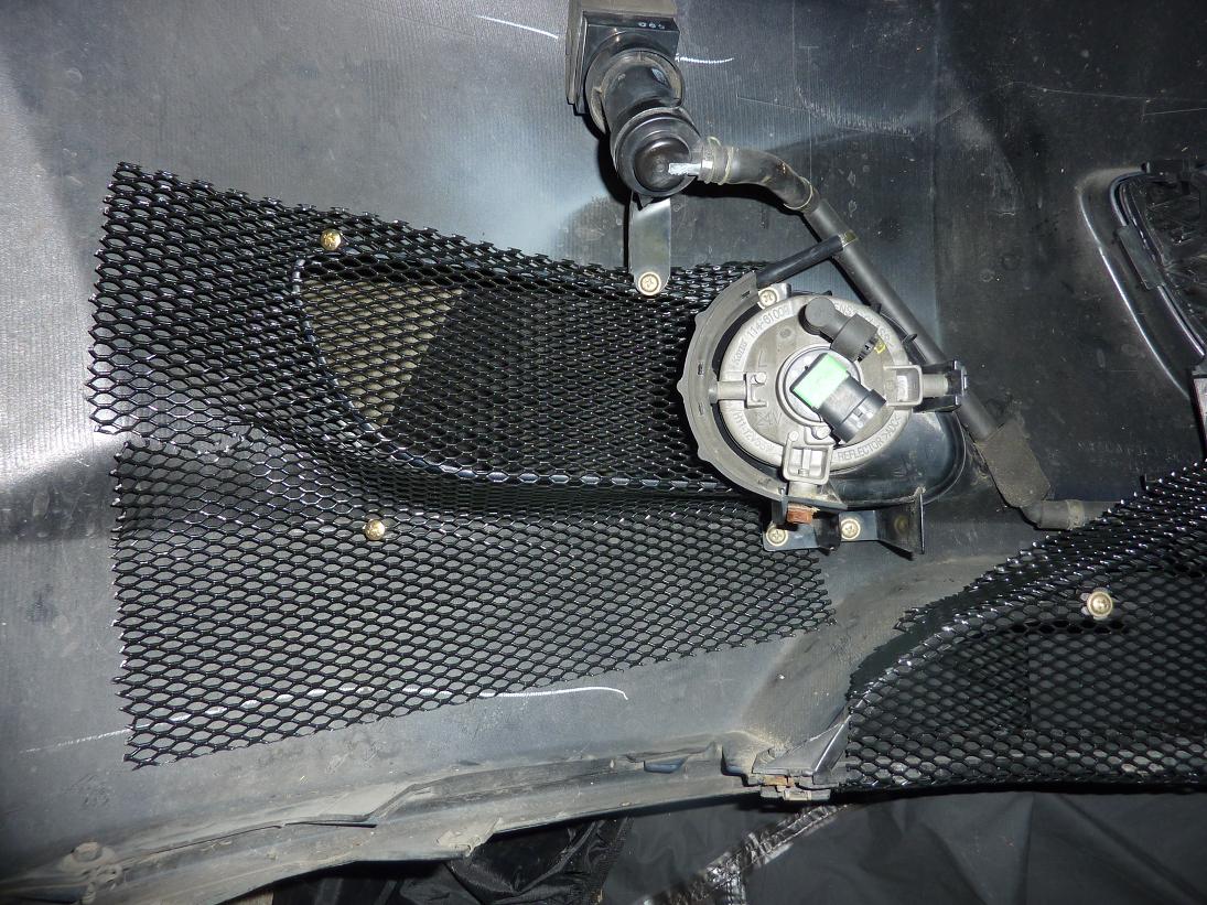 Pour la grille principale, mettez les vis sur la partie haute du plastique, sinon vous risquez de percer le tuyau de lave glace :oups: