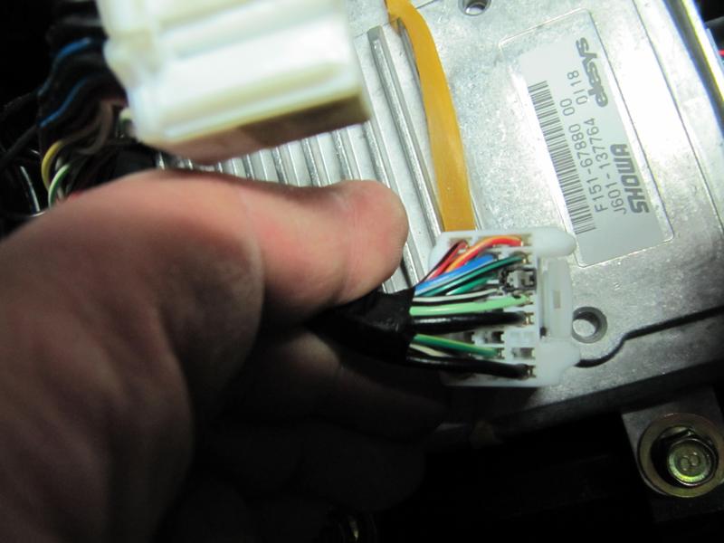 Le fil qui part du contacteur de frein est à raccorder sur le connecteur du PCM où j'ai mis du feutre noir.