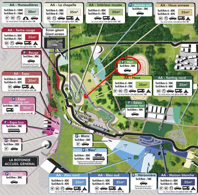 32 euros parking vert à l'intérieur du circuit ;)