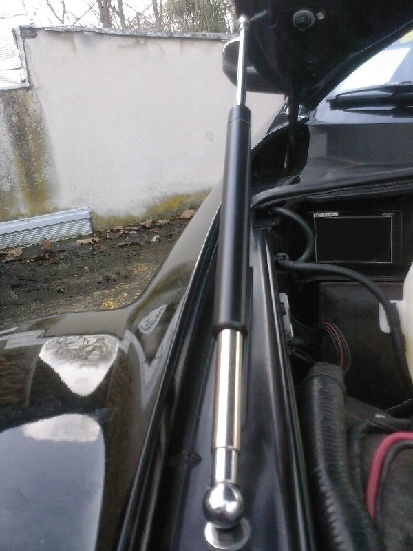 Idem. J'ajouterai qu'il faut bien serrer (mais quand je dis bien, c'est vraiment bien) les fixations sur le montant du capot, car elles auront tendance à bouger un peu avec le temps (ya bien comme un rail mais bon ... ça marche pas des masses).