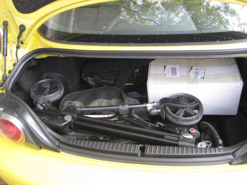 Pour la poussette, si tu retournes quelques pages en arrière (page 7 je crois), j'ai mis une photo de la Streety de ma fille, j'en ai essayé pas mal, c'était la seule vraiment adaptée au coffre (on dirait qu'elle est faite pour...). En fait elle remplit juste le fond du coffre entre les roues. Y'a 85 cm disponibles, elle fait 84! Tu pourrais trimballer le hamac, la nacelle, le sac à langer, les biberons, le chauffe biberons, et en plus tu pourrais faire tes courses! :oh: Elle est fournie avec le siège auto (maxi cosi je crois...) jusqu'à 9 mois, la nacelle (qui rentre pas à cause de la console, mais qui passe dans le coffre), et le hamac.