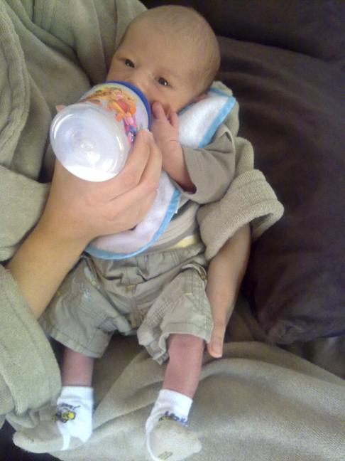 et sinon ma plus grosse modif est arrivée le 12 juin à 13h14, c'est donc bien de Aaron mon fils. il pesait à la naissance 2,880kg et mesurait 50cms. vendredi dernier il pesait 3,120kg et il ne cesse d'alourdir ma 8 de jours en jours