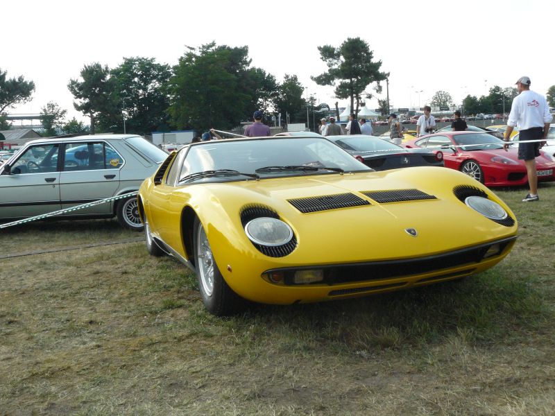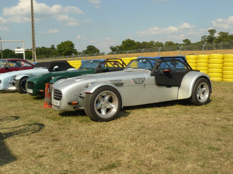 . On monte dans les voitures déjà 36 C° dehors je peux vous dire que l’ont apprécie les bienfaits de la clim et que l’ont vénère son inventeur. Nous partons suivant l’ordre prédéfini, on arrive sur le Bugatti et la grosse pagaille, des voitures dans tous les sens, on commence à tous se mélanger. 30 min plus tard après avoir zigzaguer pour arriver aux abords de la piste les organisateurs décident (enfin) d’ouvrir les portes et lâchent les fauves. Et d’un coup nous nous rendons compte que la parade n’a garder en fait que sont nom. Nous nous retrouvons tous lâcher au beau milieu de Triumph (se transformant ici est là en chicane mobile) mais aussi avec de gros joujou tel que des Lamborghini, des Porsche (un Carrera Gt rouge nous ferra d’ailleurs une belle frayeur), Ferrari (ça avance un Ferrari ?????
