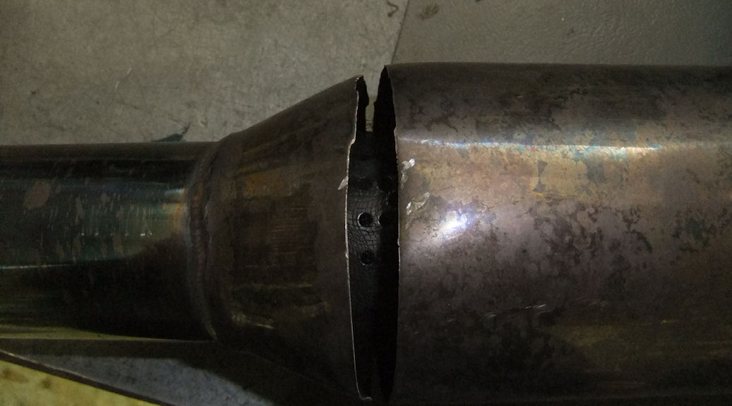 Résulat : le décata est ouvert près de la bague de raccordement aux silencieux
