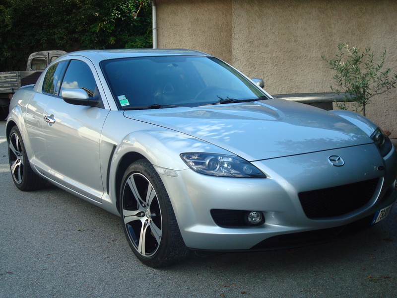 RX8 sunlight silver EP 192 ch 2004, cuir noir, tapis rx8, vitres glastint carbone light et super, pillars rx8, jantes Lazaro Azelio Black diamond alu poli 8,5x18 ET35, pneus kumho KU31, door handles chromées, catback Toyosports.