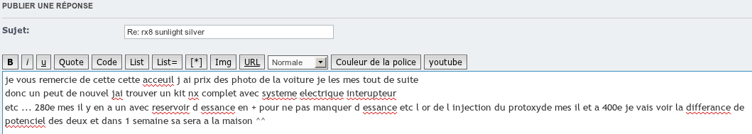 etc ... 280e mes il y en a un avec reservoir d essance en + pour ne pas manquer d essance etc l or de l injection du protoxyde mes il et a 400e je vais voir la differance de potenciel des deux et dans 1 semaine sa sera a la maison ^^